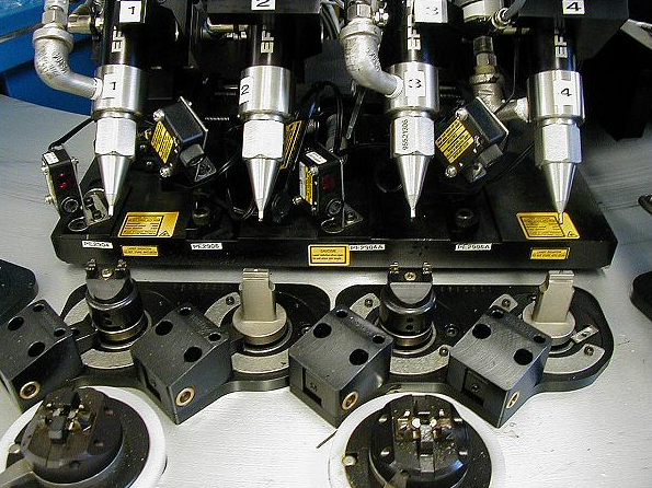 Process Development: laser degating from runners, silicone bonding, paste dispensing, wax application, laser cutting of film, and counter tape heat sealing.